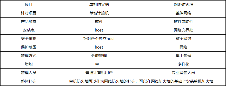 2.防御對象方面,可分類為單機防火墻與網絡防火墻,區別于防御對象。