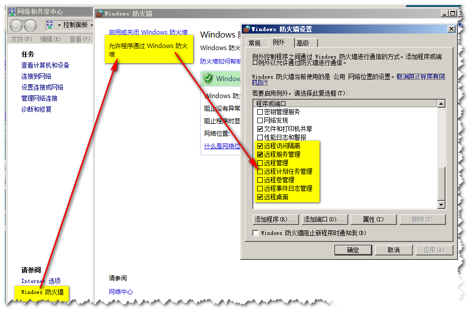 第三、把遠(yuǎn)程桌面加入到例外之列